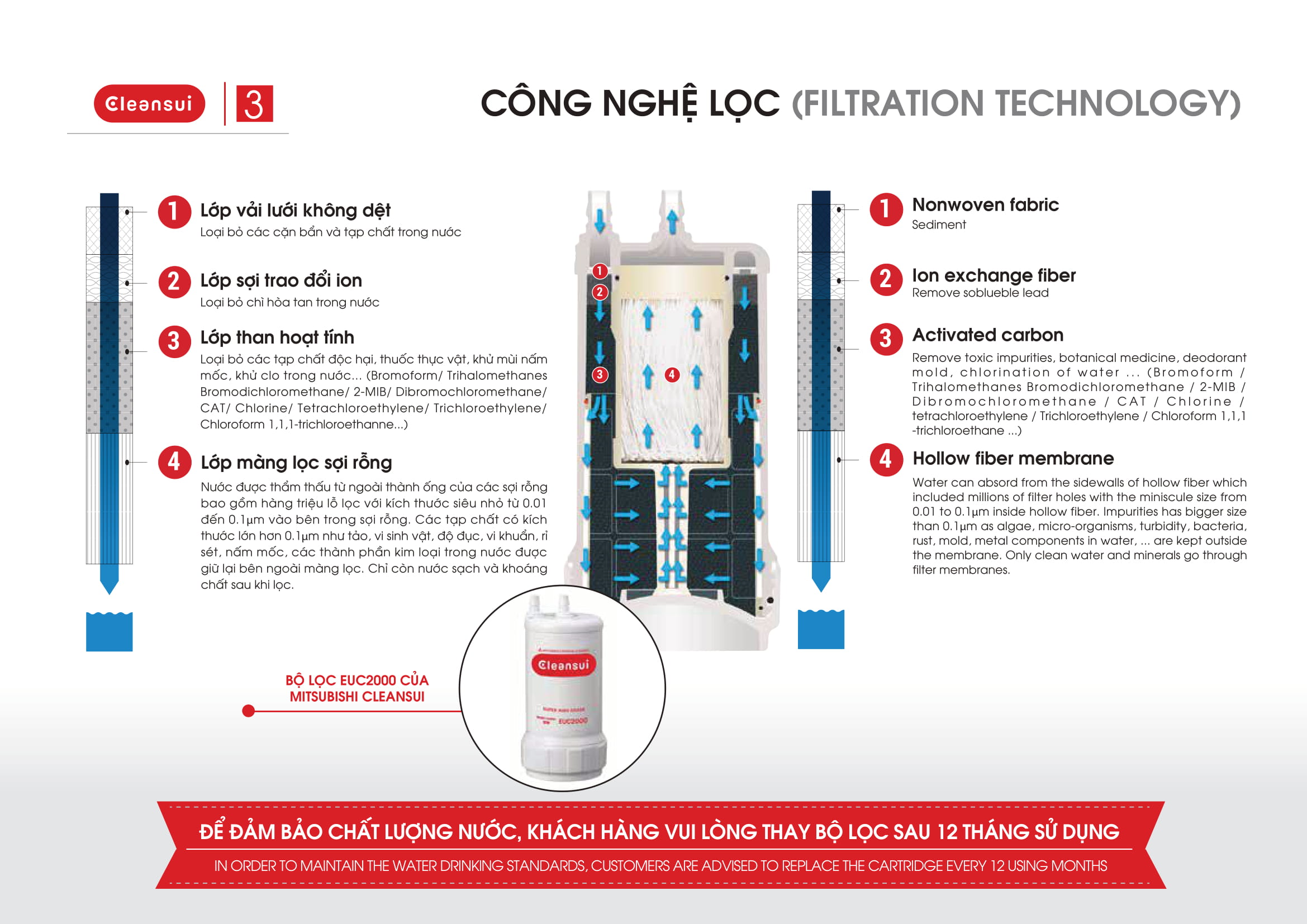 Máy lọc nước Mitsubishi ứng dụng công nghệ lọc đa tầng hiện đại: